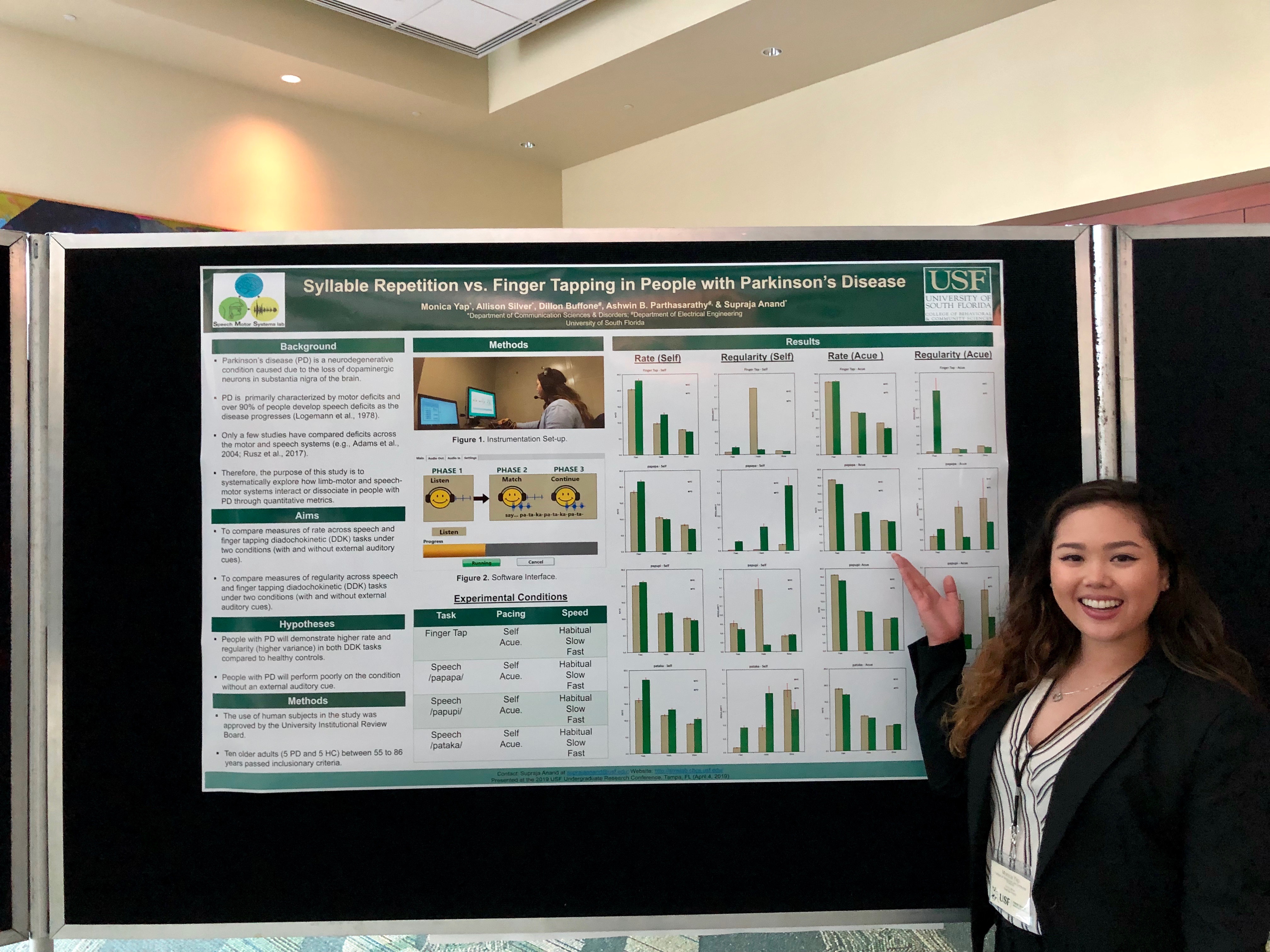 Speech Motor Systems Lab was well represented at the USF Undergraduate Research Conference. Congratulations to Monica!!